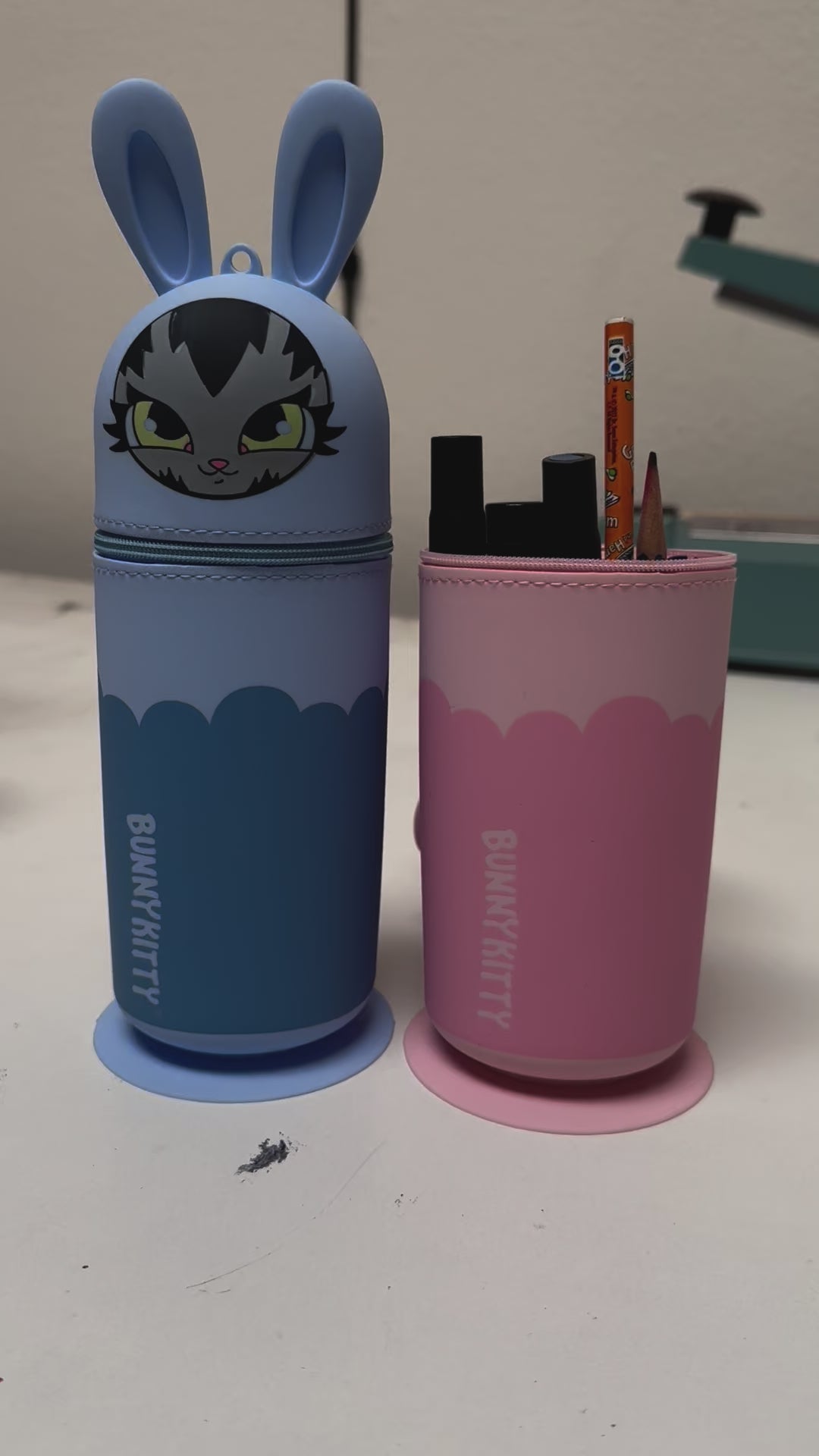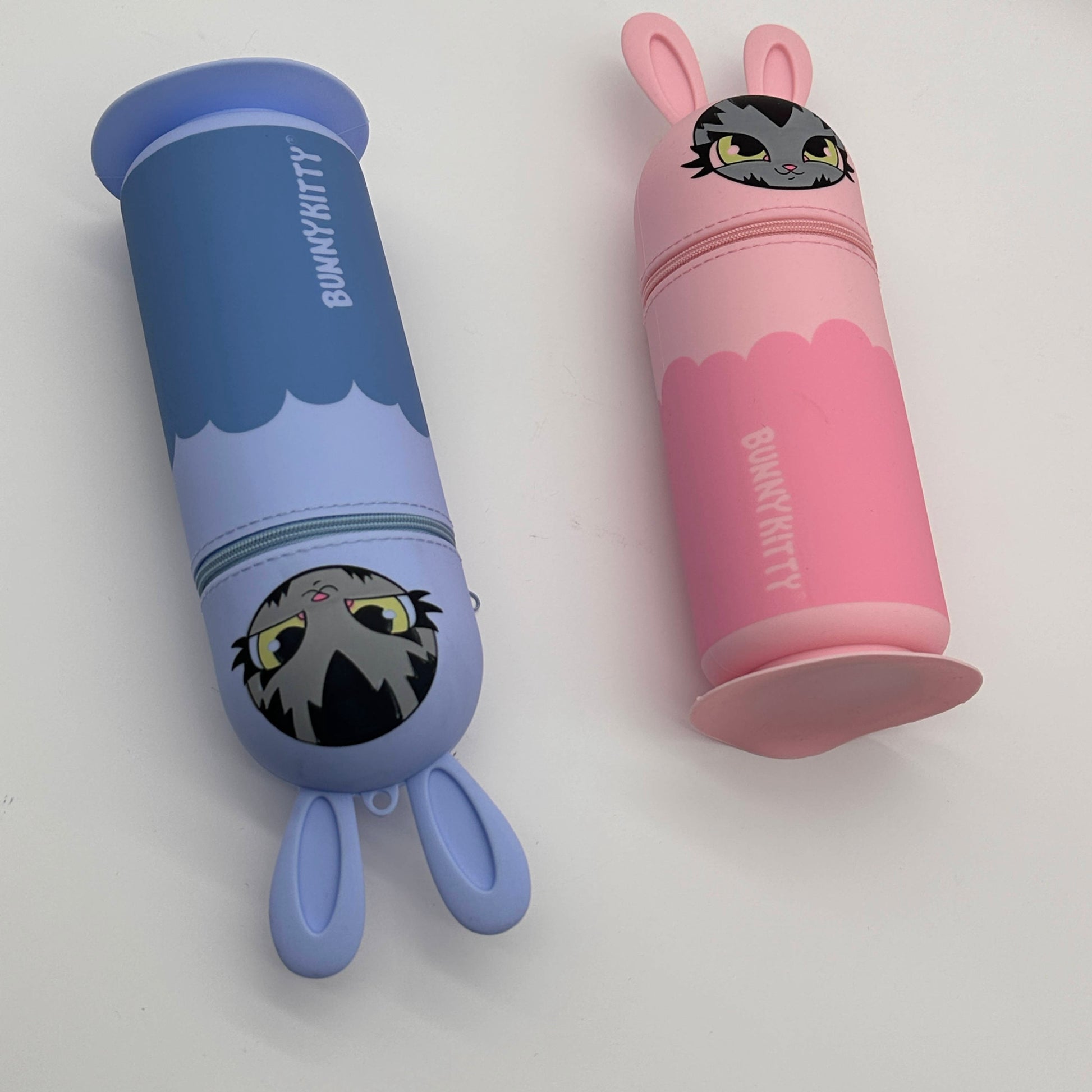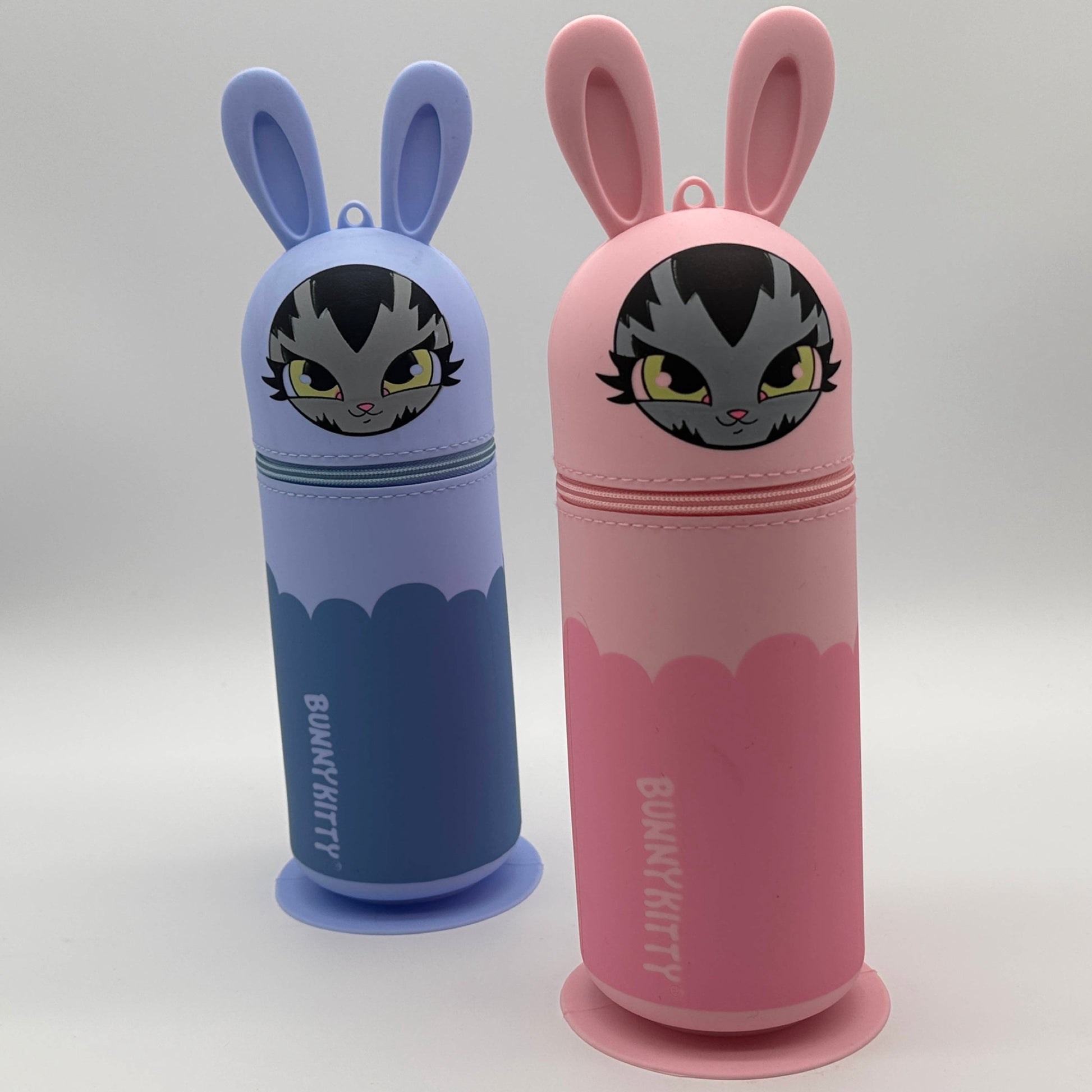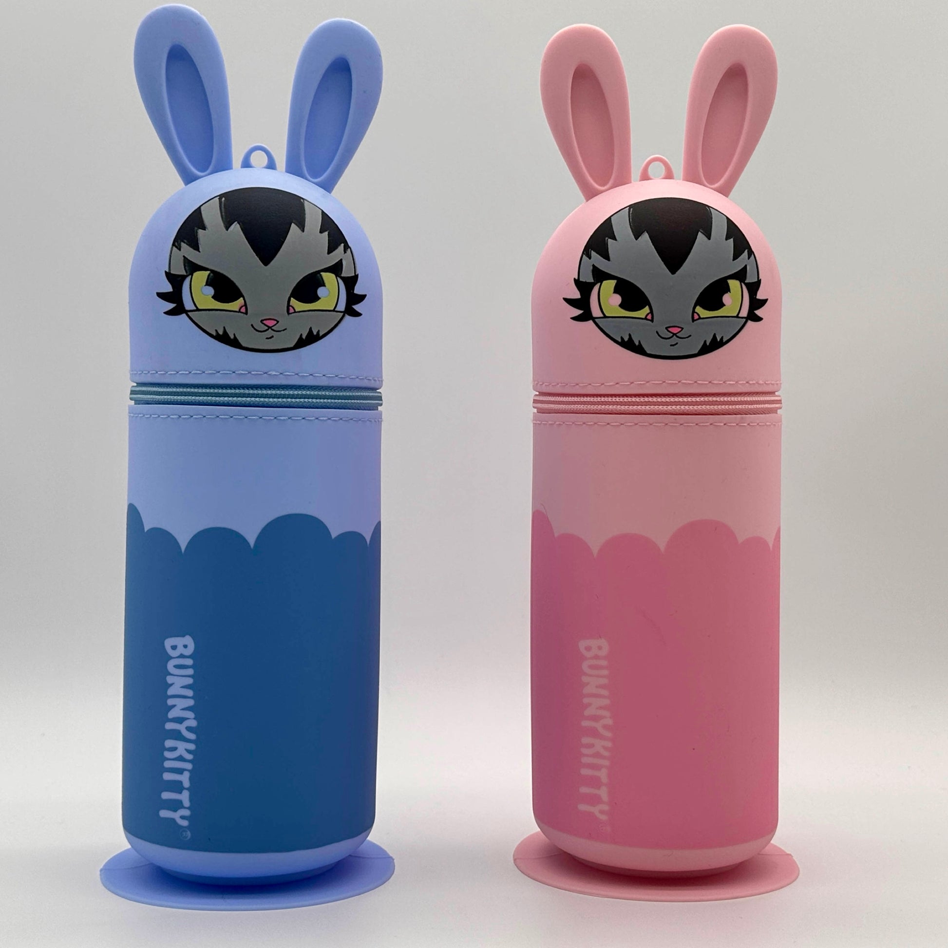 Super sleek BunnyKitty silicone pencil and supply case. Available in 2 colors Lt Blue and Lt. Pink. Available in very limited quantities.
